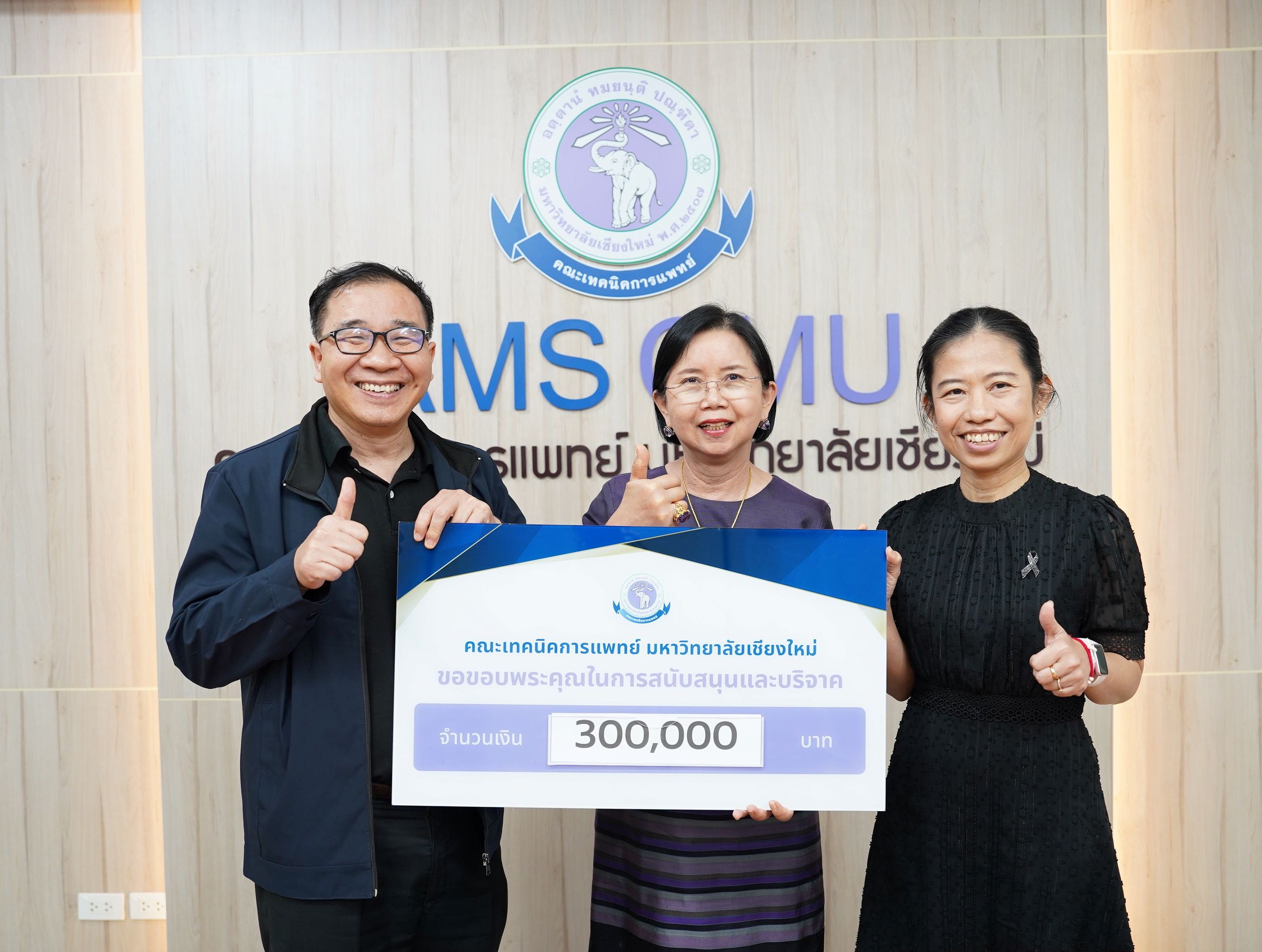 สมาคมศิษย์เก่าคณะเทคนิคการแพทย์ มหาวิทยาลัยเชียงใหม่ นำโดย ผู้ช่วยศาสตราจารย์ ดร.วาสนา ศิริรังษี นายกสมาคมฯ มอบเงินจำนวน 300,000 บาท เพื่อสมทบทุนโครงการปรับปรุงห้องประชุมและห้องบรรยายของคณะเทคนิคการแพทย์ มหาวิทยาลัยเชียงใหม่ โดยมี ศาสตราจารย์ (เชี่ยวชาญพิเศษ) ดร.สาคร พรประเสริฐ คณบดี และ ผู้ช่วยศาสตราจารย์ ดร.เพ็ญนภา คลังสินศิริกุล รองคณบดี คณะเทคนิคการแพทย์ มหาวิทยาลัยเชียงใหม่ เป็นผู้รับมอบ ณ ห้องประชุมชั้น 1 อาคาร 2 คณะเทคนิคการแพทย์ มหาวิทยาลัยเชียงใหม่ เมื่อวันพุธที่ 11 กุมภาพันธ์ 2569